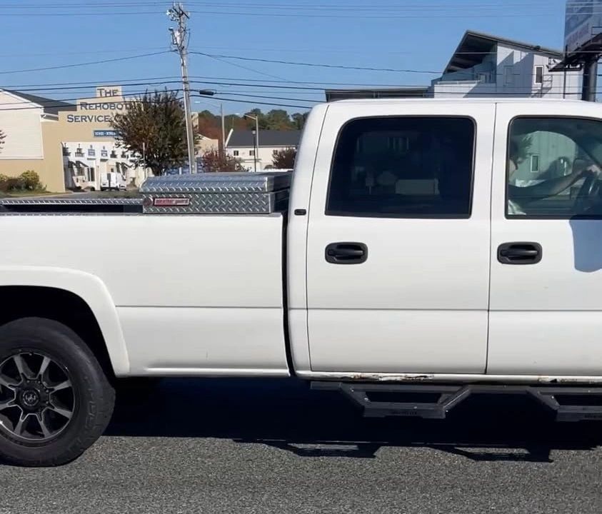 11/15/25 - White Chevy 4x4, 4-door truck that likes to blow black smoke at us protesting along Rt1. “Rolling coal” is illegal and can cause health problems to those who breathe in the particulates.